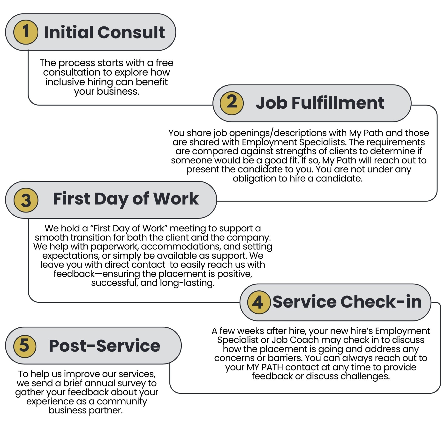 My Path provides resources, identify potential roles, and guide you through our Community Business Partner process. Our goal is simple- the right hire, positive experiences, and successful outcomes for both you and the candidate.