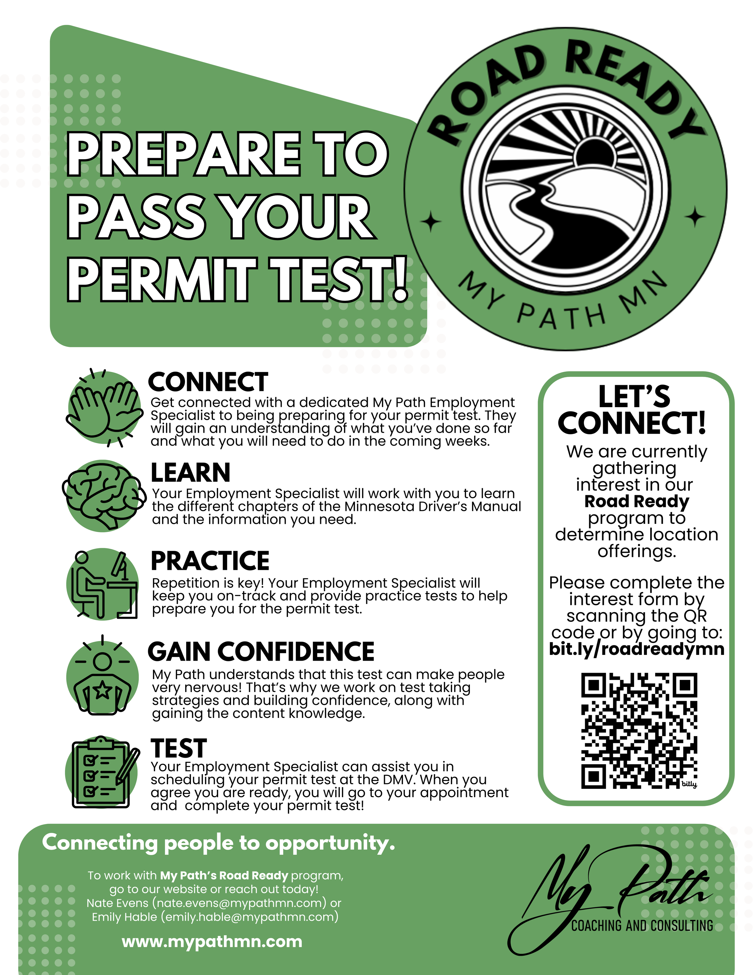 A My Path Employment Specialist will help participants prepare for the MN Driver’s Permit Test.