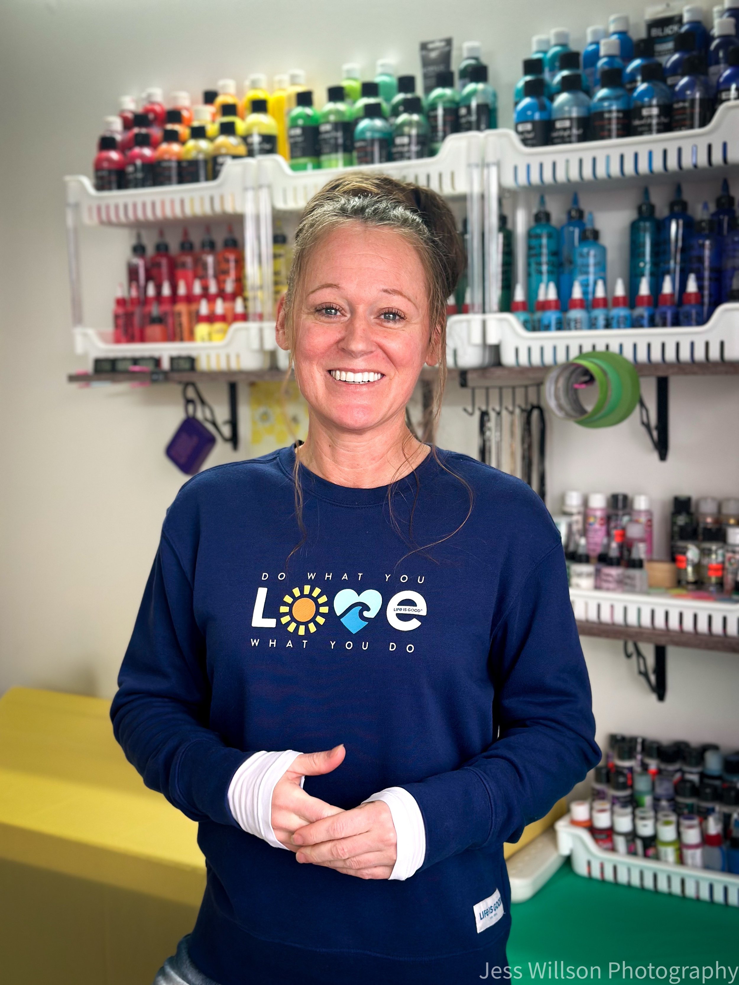 Every piece of art Melissa creates is one of a kind. She trusts the flow of the paint and through the pour comes each unique creation. Like any true artist she loves to experiment with any medium and any method. If bring her an idea, she can bring it to life!